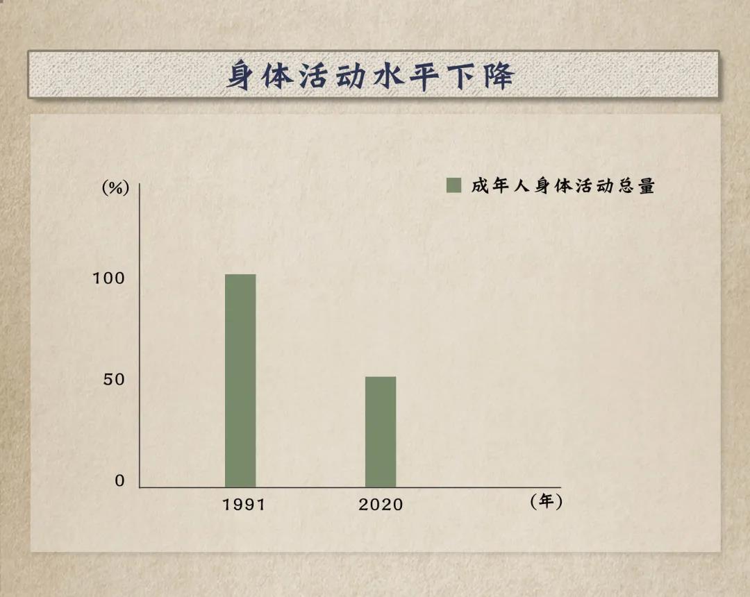 中國居民總身體活動量與心血管病死亡呈顯著負(fù)關(guān)聯(lián)。1991年至目前,成年人身體活動總量下降近一半。